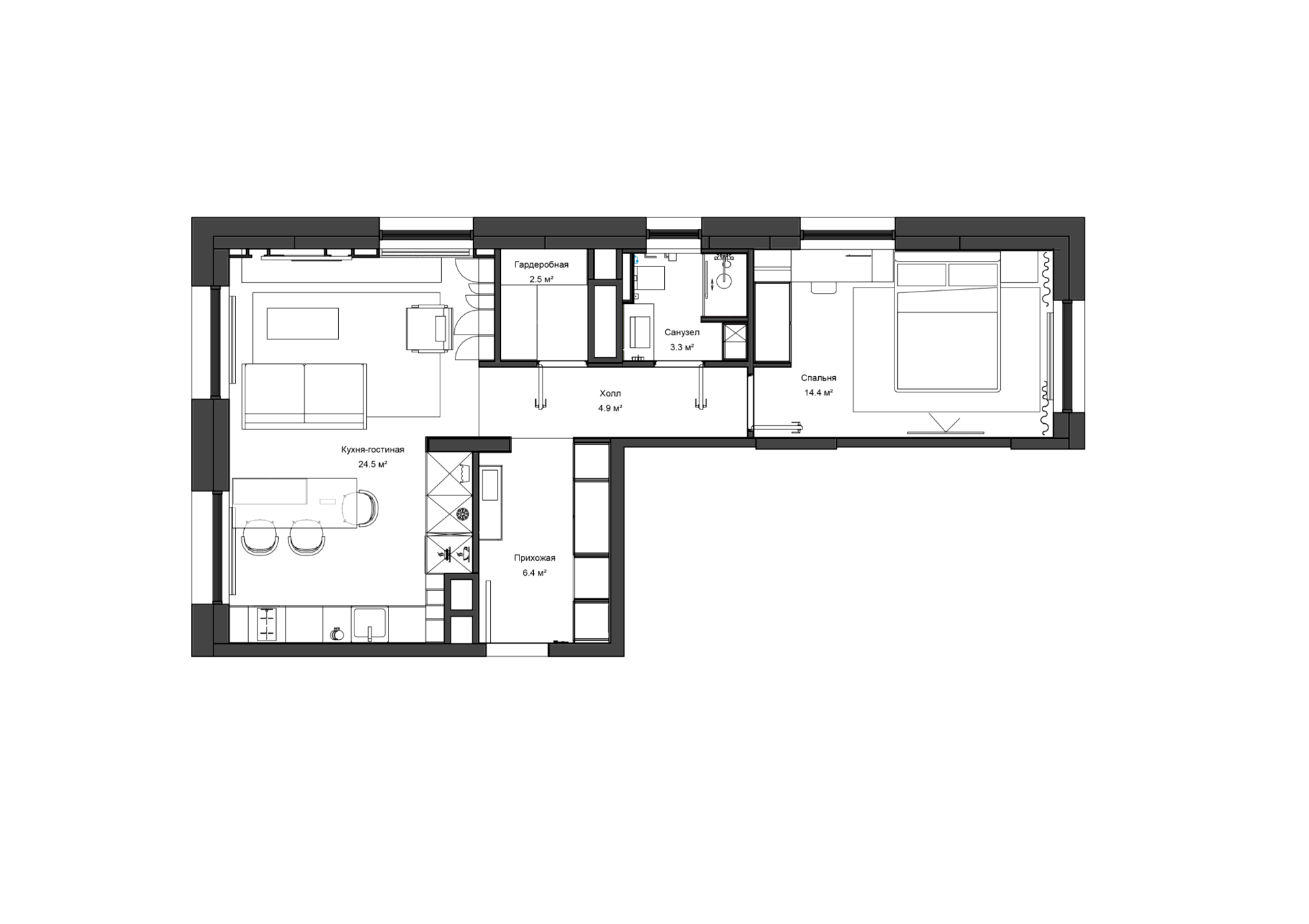 Общая площадь: 60 M²