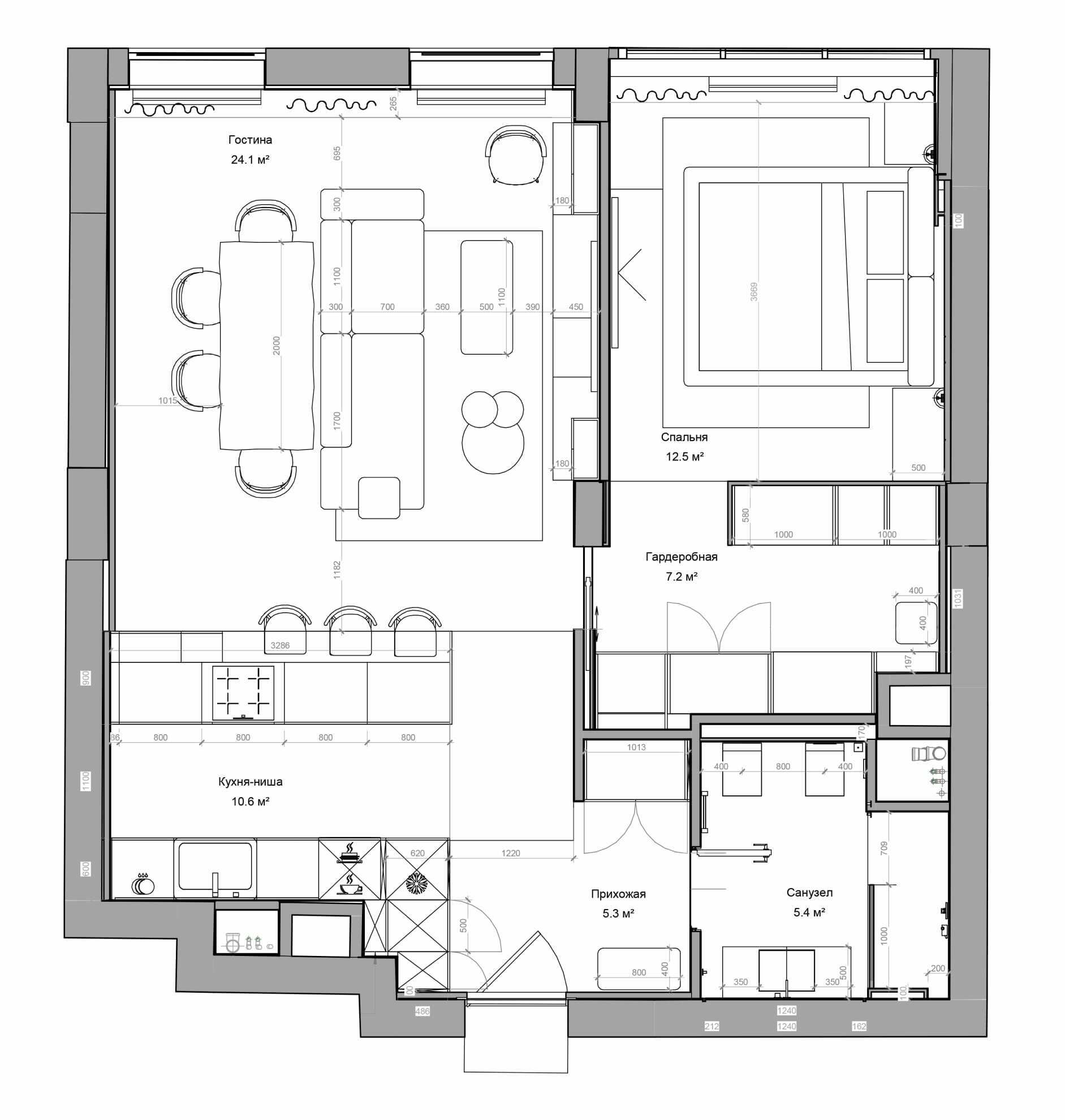 Общая площадь: 65,3 M²