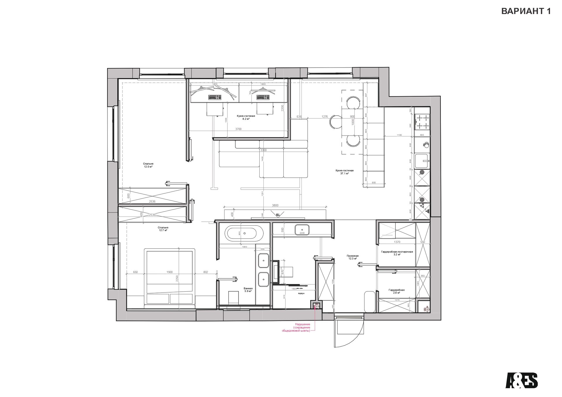 Общая площадь: 80 M²