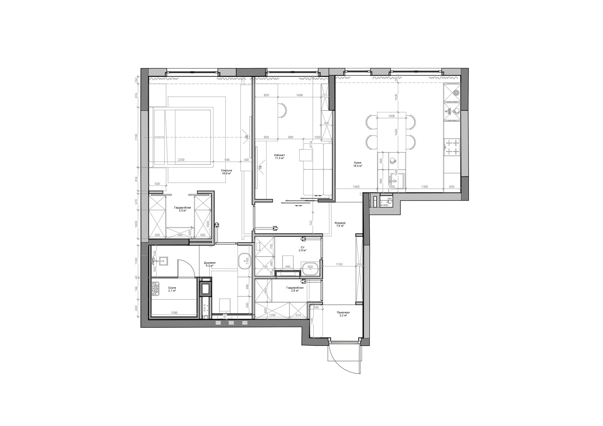 Общая площадь: 67 M²