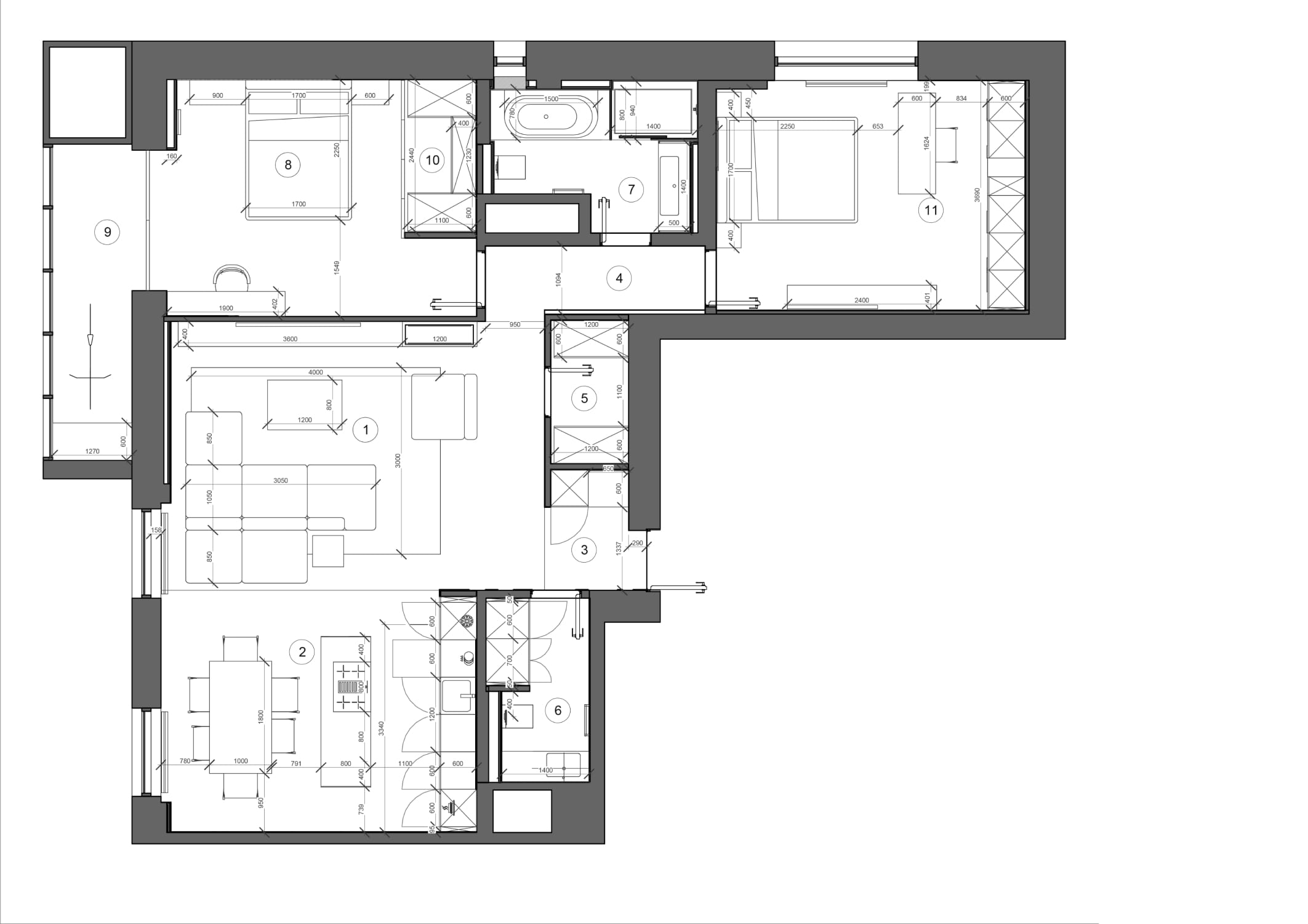 Общая площадь: 110 M²